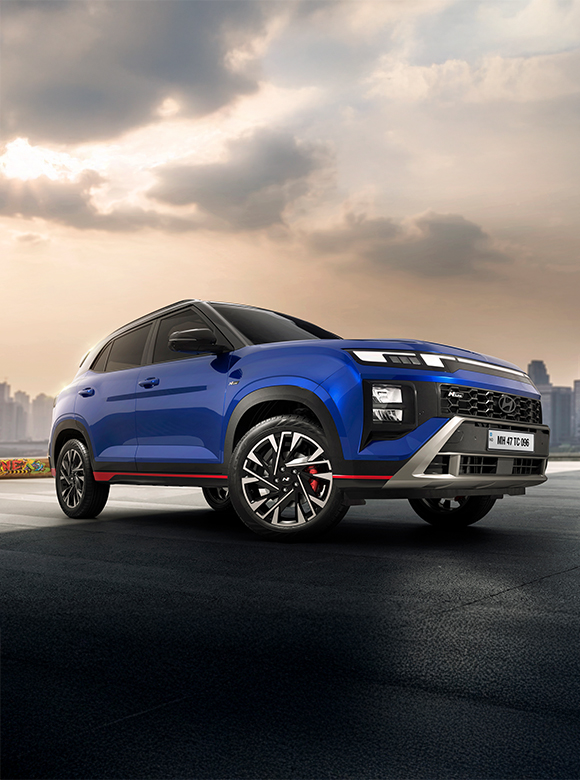 The Hyundai N Line portfolio is specially engineered to redefine driving pleasure, promising an exciting journey every time you take the wheel. Complementing the front design, the Hyundai CRETA N Line offers a new rear design with sporty skid plate with red inserts, sporty twin tip exhaust. Embracing Hyundai's unique and distinctive N Line design language, the CRETA N Line features the unique N Line emblem on the front, side and rear profile, adding more character to the car.